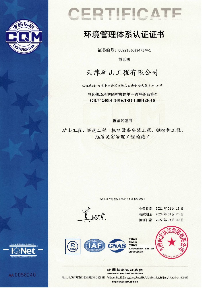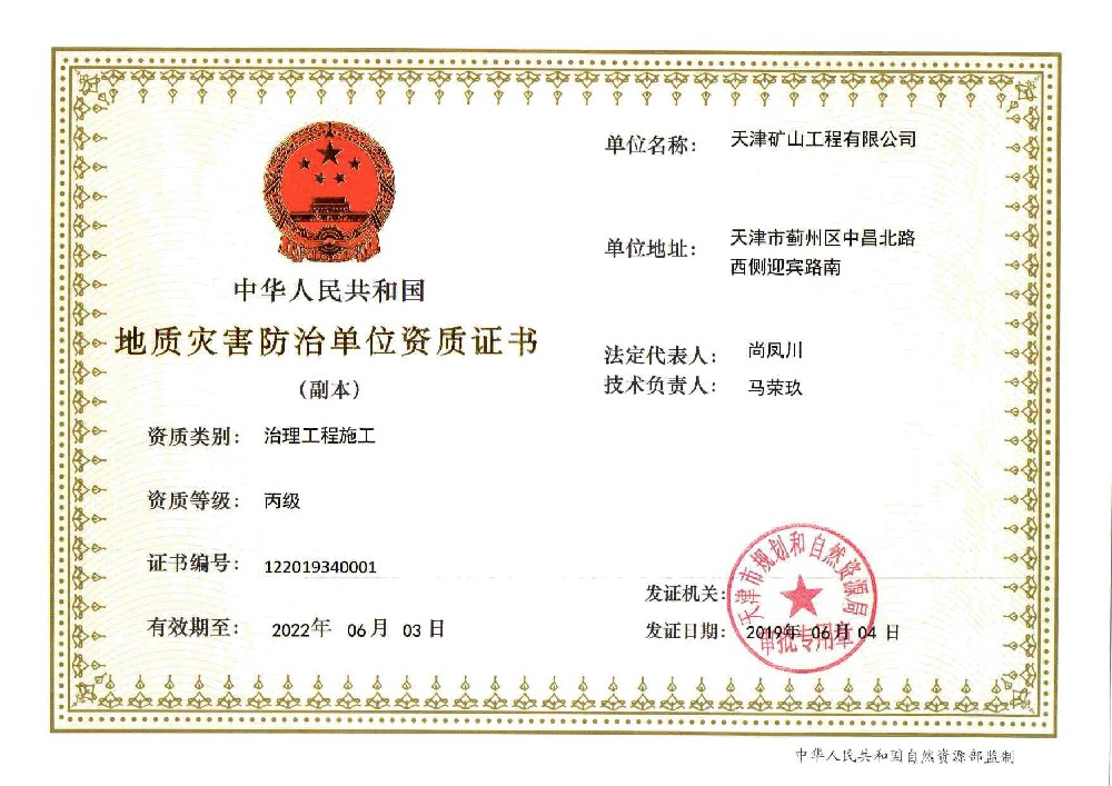 天津礦山工程有限公司(以下簡稱公司)始建于1965年,隸屬中國建材集團有限公司,是從事礦山總承包、礦山開采運營、礦山設計與咨詢、土石方爆破、生態恢復治理、鋼結構制作安裝、機電設備安裝以及工程測量的專業化礦山施工企業和礦山開采運營總承包服務商。具備礦山總承包和爆破雙一級資質。 公司始建于1965年,總部位于天津市···